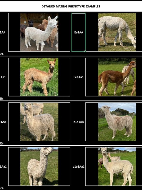 Not that we know of. Building up our database of photos which show the phenotype of alpacas with specific genetic codes will help us to build a progressively deeper understanding of all the factors involved.